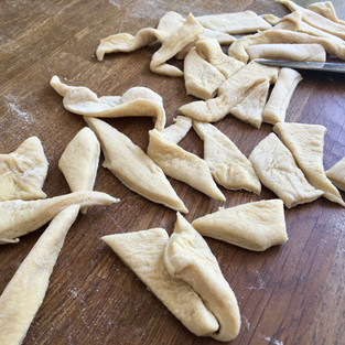 You'll need your rolling pin again now, a sharp knife, some more flour and a couple of lined or buttered and floured baking trays.
